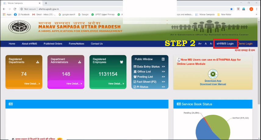 - Make sure you open the official eHRMS UPSDC GOV IN website only.